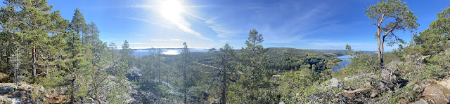 Vid Mickelsvattnet slår jag mig ned vid rastplatsen på udden och äter min medhavda matsäck. Blåsten gör att jag inte stannar så länge därefter, utan vänder tillbaka samma stig som jag kommit.